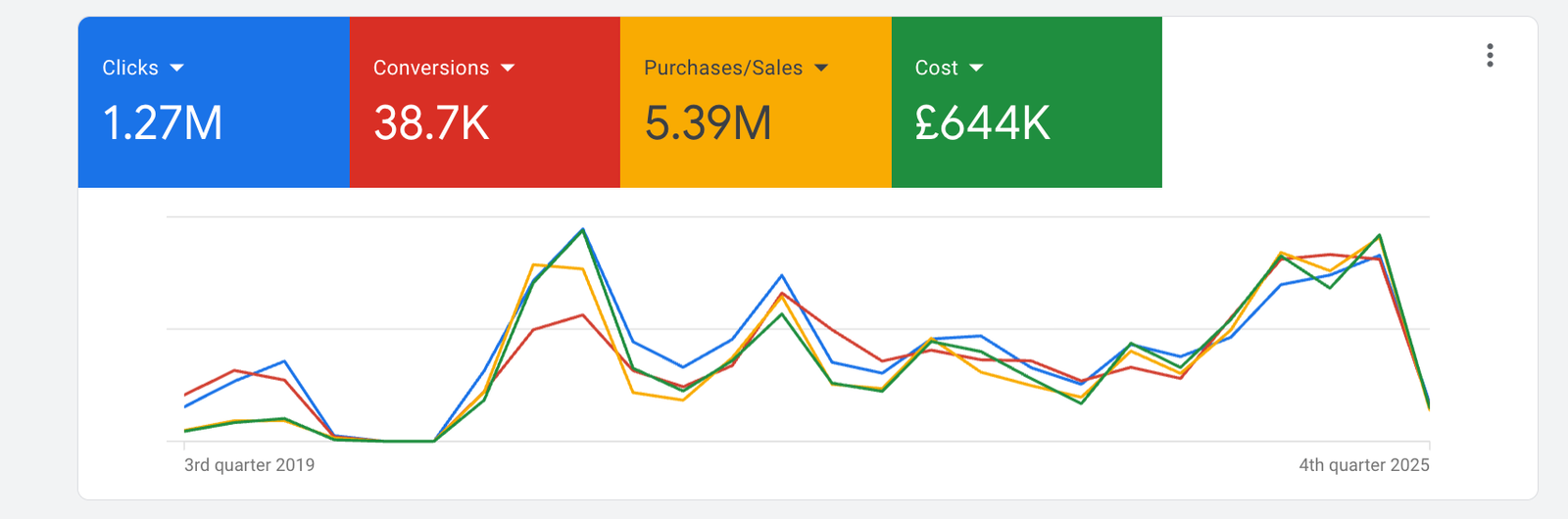 1.27M+ clicks, 38.7K conversions, and £5.39M+ in tracked sales